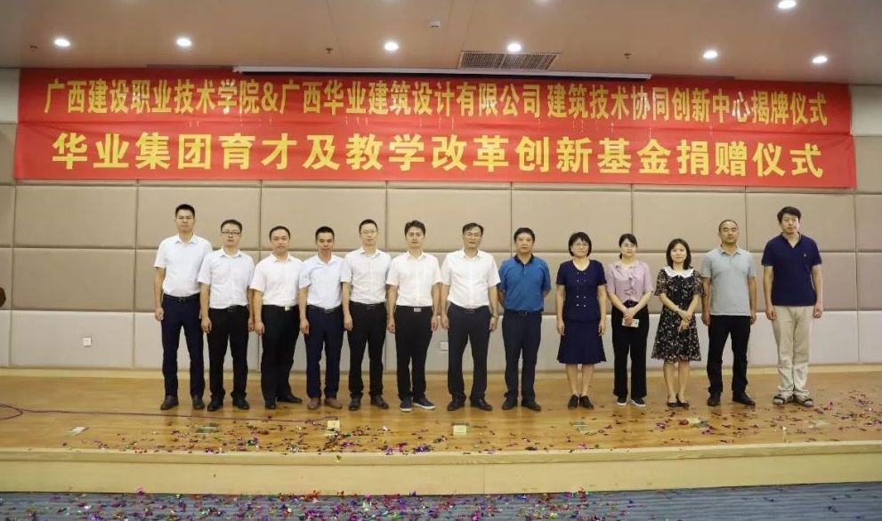 廣西華業(yè)投資集團(tuán)育才及教學(xué)改革創(chuàng)新基金捐贈(zèng)暨廣西建設(shè)職業(yè)技術(shù)學(xué)院&廣西華業(yè)建筑設(shè)計(jì)有限公司建筑技術(shù)協(xié)同創(chuàng)新中心揭牌儀式順利舉行..