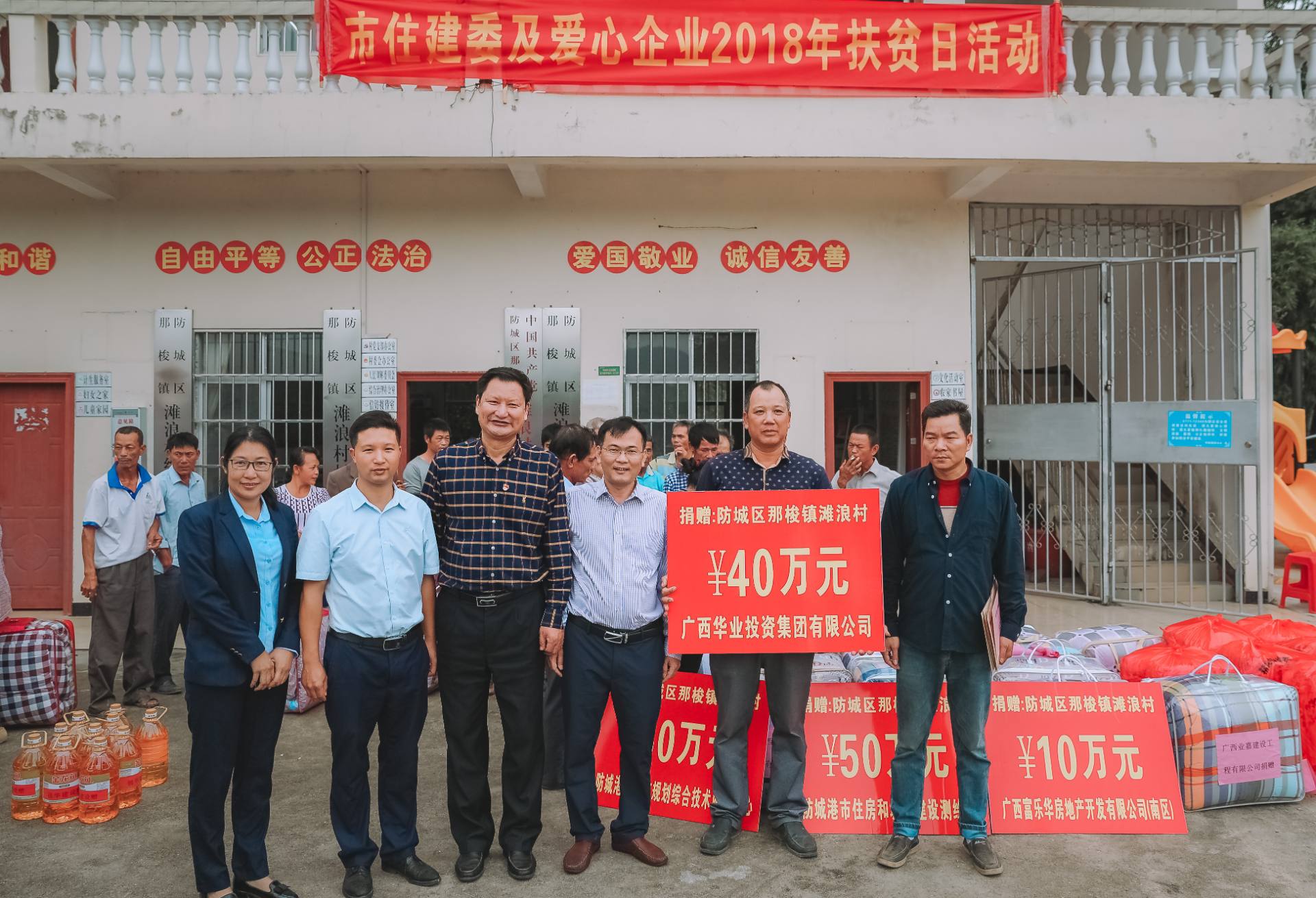 廖人興副總裁、鐘麗霞主席代表華業(yè)集團(tuán)捐贈40萬元用于建設(shè)灘浪村扶貧項(xiàng)目