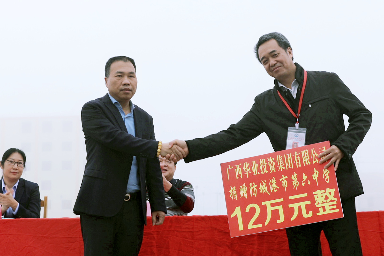 龍其偉總裁代表華業(yè)集團(tuán)向防城港市六中捐贈華業(yè)獎(jiǎng)教學(xué)金12萬元