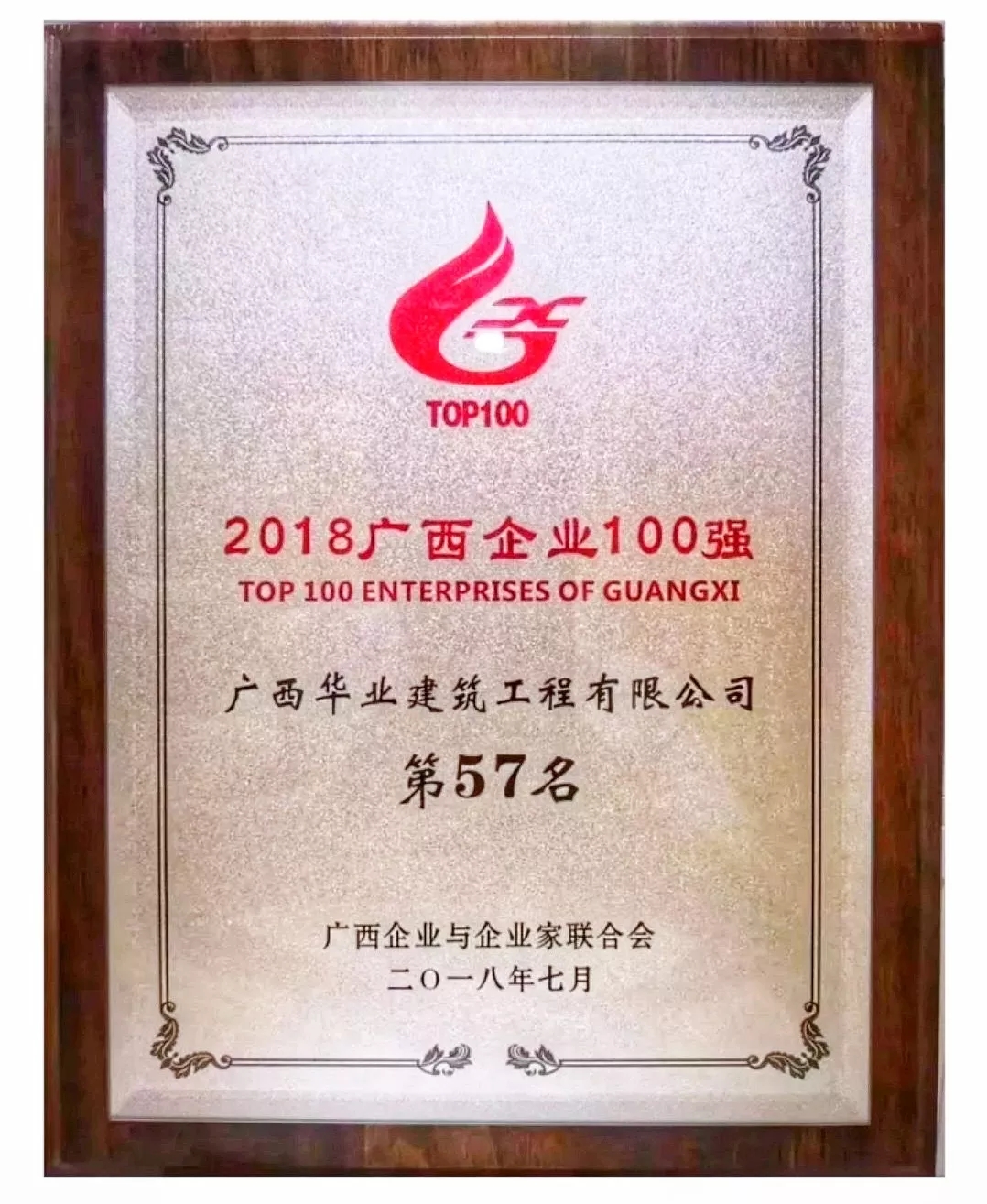 2018廣西百強企業(yè)隆重揭曉! 廣西華業(yè)建筑工程有限公司位列廣西百強企業(yè)第57名,廣西民營企業(yè)50強第15名!