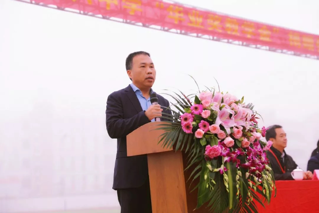 華業(yè)集團(tuán)總裁龍其偉在捐贈(zèng)儀式上發(fā)表講話