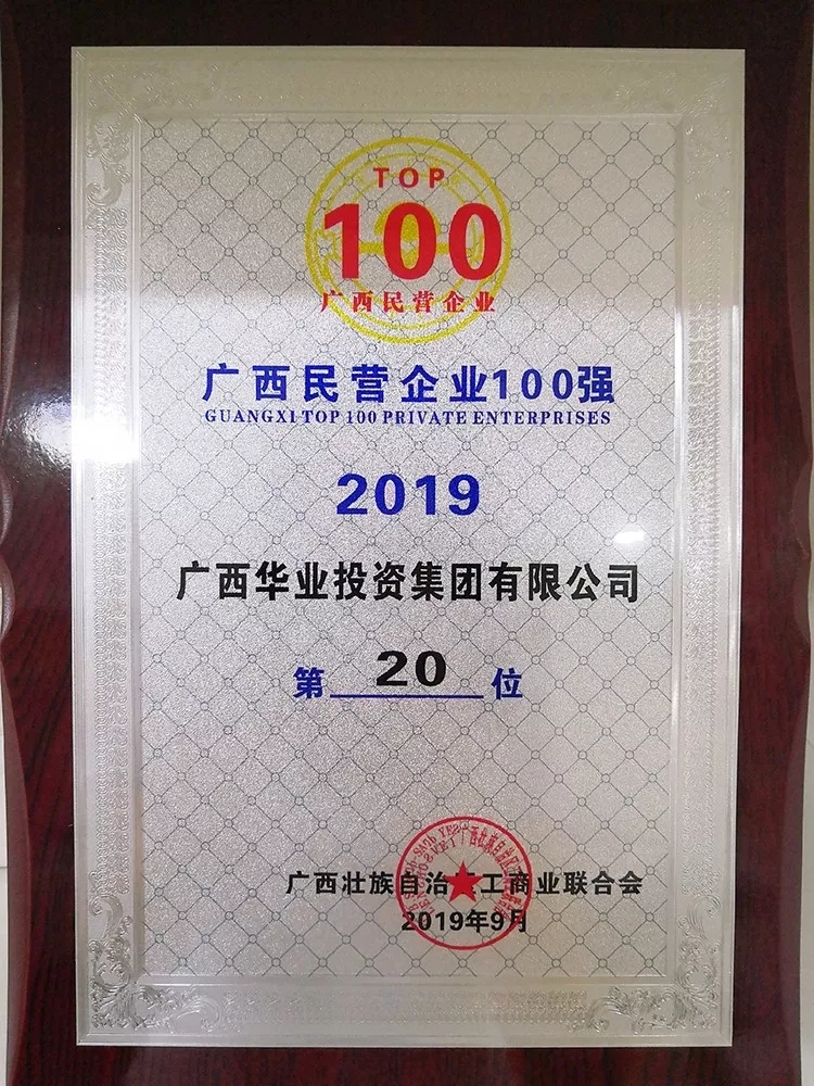 華業(yè)集團(tuán)榮登“2019廣西民營企業(yè)100強(qiáng)” 第20名