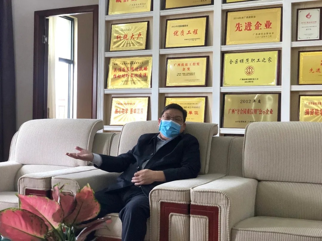 龍其偉總裁對(duì)市工商聯(lián)覃主席一行的到來表示歡迎,對(duì)工商聯(lián)的關(guān)心表示感謝。他向調(diào)研組一行詳細(xì)介紹了華業(yè)集團(tuán)防控疫情的具體工作舉措,并匯報(bào)了華業(yè)集團(tuán)積極配合防城港市開展抗擊疫情工作、臨危受命承建防城港版“小湯山醫(yī)院”——防城港市第一人民醫(yī)院感染性疾病科應(yīng)急負(fù)壓病房項(xiàng)目和踴躍捐贈(zèng)愛心款28萬元、捐贈(zèng)防護(hù)抗疫物資價(jià)值7萬元的工作情況,也反映了華業(yè)集團(tuán)目前要實(shí)現(xiàn)全面復(fù)工復(fù)產(chǎn)所存在的困難和問題。最后,龍其偉總裁還表示,華業(yè)集團(tuán)將嚴(yán)格按照市委市政府和主管部門的決策部署要求,繼續(xù)全面做好防控疫情工作,想方設(shè)法解決當(dāng)前困難和問題,逐步實(shí)現(xiàn)企業(yè)全面復(fù)工復(fù)產(chǎn);同時(shí)積極創(chuàng)造有利條件,爭取為防城港市抗擊疫情、早日打贏防疫阻擊戰(zhàn)發(fā)揮更大作用。