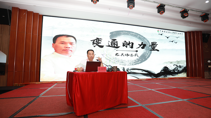 講堂上,龍其偉總裁引用《周易》中的經(jīng)典名句“窮則變、變則通、通則久”開篇,結(jié)合自身的經(jīng)歷及華業(yè)集團的發(fā)展歷程,講述了華業(yè)集團在面對困境和機遇時,如何利用變通的力量在危機中抓住機遇、打開局面,深刻闡述了“變通的力量”在工作和生活中的重要意義。